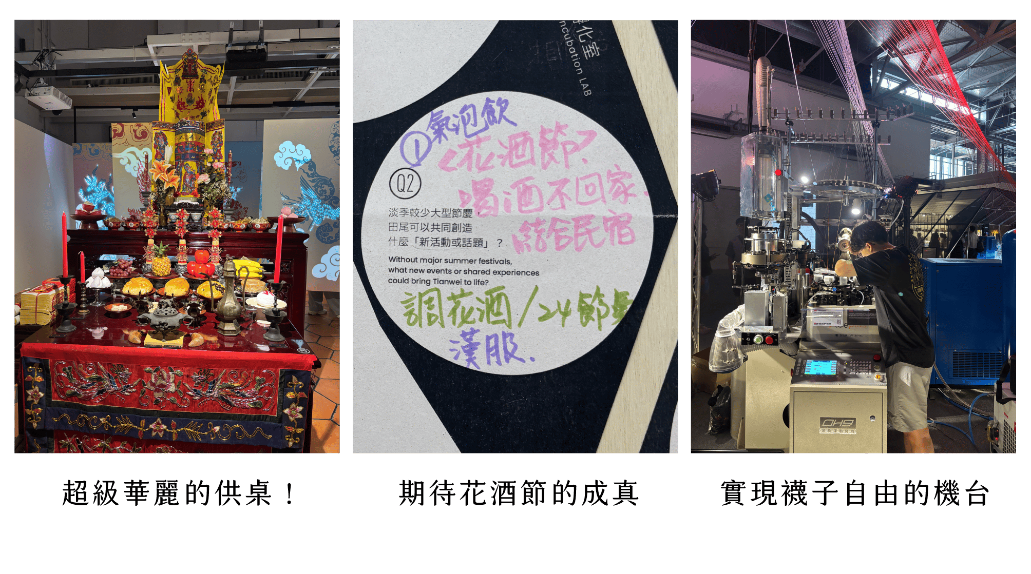 最後來到高鐵附近的國際展覽中心,大大的展館裡呈現 7 個代表彰化的產業,其中最讓我最有印象的是現場展演的「襪子機」,機台大概 7–8 分鐘就能自動做出一雙襪子,它還會把襪子翻面,非常厲害! 男友也和我分享他國中去同學家玩,旁邊就有襪子機在運轉的聲音,他那時只覺得「好吵」,現在想起來,反而是一種很在地的生活記憶。