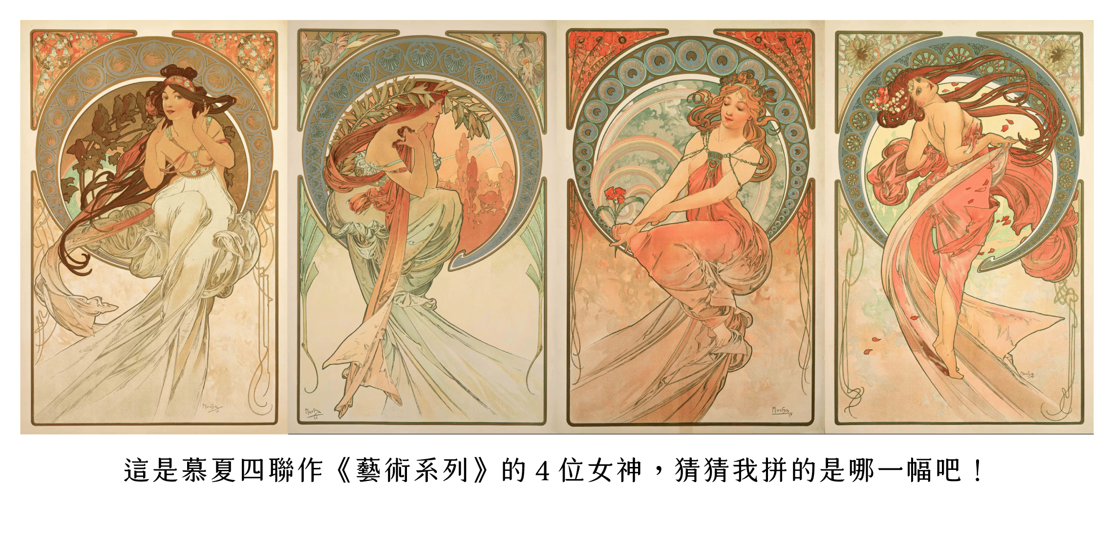 而我覺得意外的收穫是,這次拼圖讓我非常仔細觀察畫裡的細節,雖然本來就知道慕夏這位以四季女神系列聞名的藝術家,他的許多作品都是四幅為同一系列來呈現。但是對高中念設計的我來說,這只是一個考試題目。