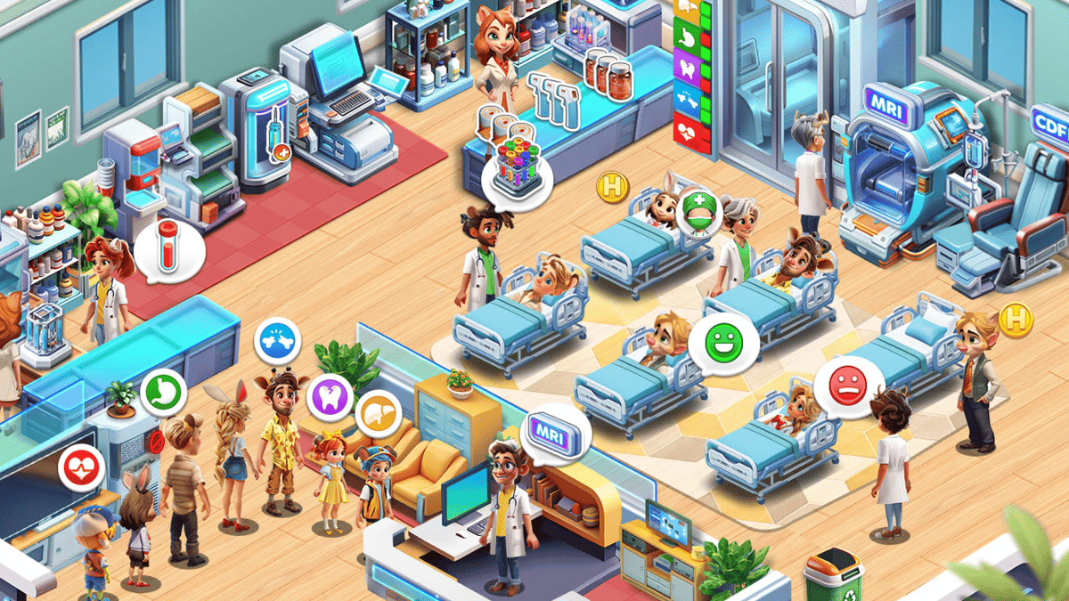 我是一個小護士,在全球的醫院中挑戰升級。從奧克蘭的醫院出發,穿梭在病人與醫生之間,接待病人、叫醫生、拿正確的藥品與治療方式,確保病人快樂開心,然後賺錢升級醫院、提升器材。每個城市有 40-60 個不等的關卡,全破之後會前往下一個城市。